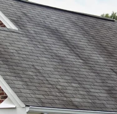 Often appears as green or black streaks, especially in damp or shaded areas. breaks down the shingles by feeding off of the limestone granules embedded in the shingles. This decreases a roof's ability to reflect ultra-violet rays of light and shortens the life of the roof.can have negative health effects, especially for individuals prone to allergy flare-ups. Algae particles give off airborne toxins around your property that can be harmful when inhaled, especially for a person who's already sick.