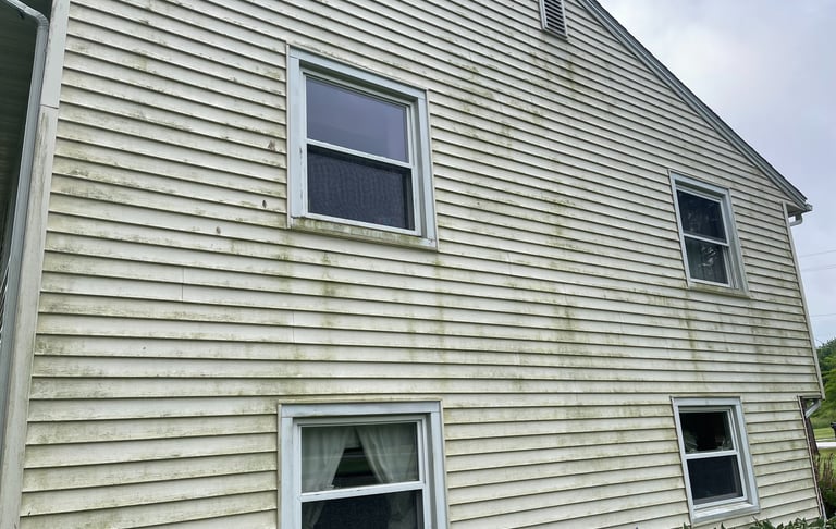 Dirt and Dust accumulates from the air and can settle on surfaces, creating a layer that can attract other types of debris like Pollen which can make siding look undesireable and can even lead to the mold growth above.